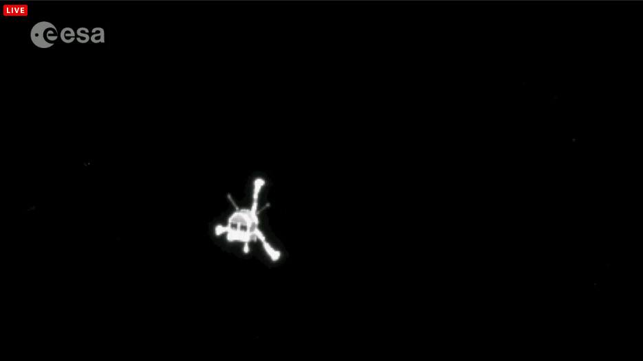 Pri zostupe tesne nad povrchom mal lander vystreliť dve harpúny, ktoré by narazili na povrch kométy a ukotvili lander Philae. Lenže nevystrelili a lander Philae absolvoval dve odrazy od povrchu kométy. Zahníezdil kilometer od miesta Agilkia. Časť solarných panelov je poškodená, časť v trvalom tieni. To množstvo slnečného žiarenia, ktoré dopadá na solárne panely, nestačí na pokrytie energetického hladu landeru. Od pristatia batérie vydržia 55 až 65 hodín. V týchto hodinách by sa mal snížovať energetický výkon a klesať až k tichosti počítača a prístrojov.