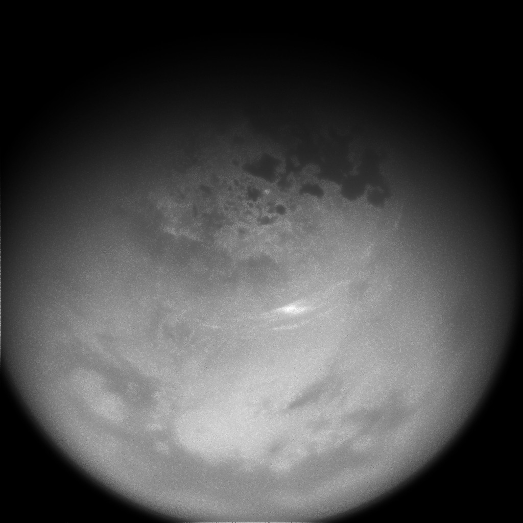 Na začiatku tohto roku nám NASA poskytla nový snímok mesiacu Titan, ukazuje jeho severnú hemisféru. V blízkosti pólu sa nachádza nespočetne veľa malých a veľkých jazierok. Tieto jazierka sa skladajú hlavne z metánu, v bežných pozemských kondíciách je to veľmi horľavý plyn. Keďže je ale na Titane tlak 1.2 atmosfér, teplota -180 °C a takmer žiadny kyslík, sú na ňom bezpečné a tekuté. Čo je ale zaujímave, už niekoľko rokov sa na Titane neobjavovali takéto oblaky, len hrubá vrstva hmly. Fotka bola spravená pomocou infračerveného filtra.